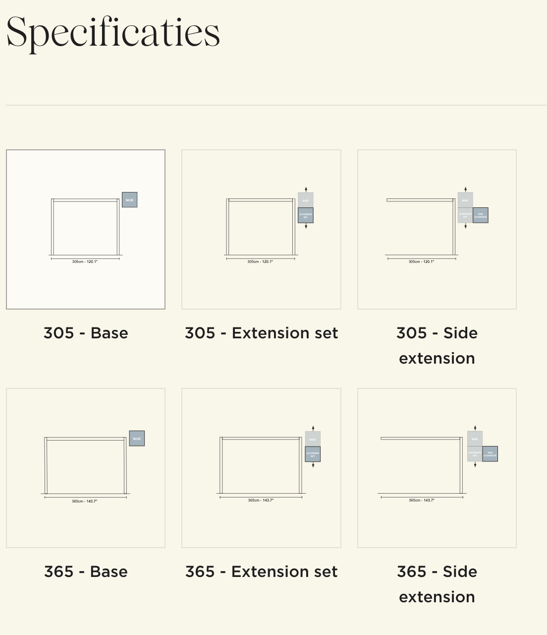 Base 305cm – Extension set 305cm – Side extension 305cm
